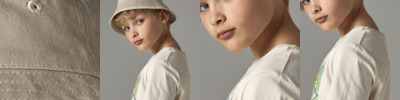 100% Organic cotton twill. Lining: Polyester cotton blend. Contains 100% certified organic cotton. Protection against sunlight – UPF50+. Unisex styling. Stitched ventilation eyelets. Fully lined. TearAway label for easy rebranding. Available in two sizes – S/M (3–6 years) and M/L (7–12 years).
