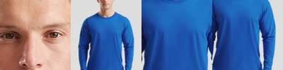 Neckline with bound 1x1 rib with Lycra® in contrast colour. Contrast raglan sleeves. Fine knit gauge for enhanced printability. Twin needle stitching detail on neck, sleeves and hem. Produced using Belcoro® yarn for a softer feel and cleaner printing process.