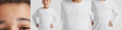 - Waist, neck and cuff rib in Cotton/Lycra® for shape retention