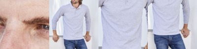 Taped neckline. 3 button fused placket, selfcoloured buttons. Reinforced shoulder seams with single needle stitching. Ribbed flat-knit collar and cuffs.