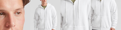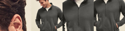 Narrow covered zip for enhanced printability. Double fabric hood with self-coloured drawcord and single jersey backneck tape. 2 front pouch pockets.