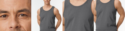 100% Cotton pre-shrunk Jersey knit. Dark Heather, Heather Sapphire, Lilac, Sunset: 50% Cotton, 50% Polyester. Sport Grey: 90% Cotton, 10% Polyester