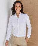 Women's modern fitted, button-down Oxford shirt. Cotton-rich lightweight Oxford with wrinkle resistant finish. Short point collar. Pearlised buttons.