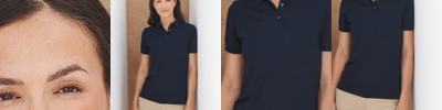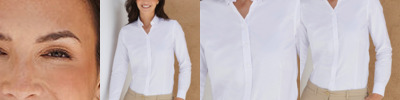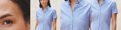 Modern Ladies fit with shaped side seams. Lightweight micro-fine piqué with a short point collar, fitted sleeve and cuffs. Micro-fine piqué is ideal for printing. 2 Button placket, DTM buttons. Contrast herringbone tape in back neck. Henbury Cut-out back neck brand label.