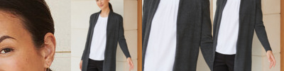 Fine knit, 12 gauge women's long line loose cardigan. Half ribbing detail on body and sleeves. Semi-fashioned sleeve. Henbury cut-out brand label. Co-ordinates with HB720 product range.