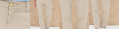 Men's slim fitting chino with stretch and new Flex waistband for additional comfort. Includes YKK front zipper, belt loops, slanted side pockets, two single jet back pockets, back darts for added fit and DTM buttons.