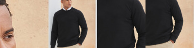 Fabric using recycled materials. Regenerated cotton mixed with recycled polyester. Brush back fleece. Set-in sleeves. Ribbed cuffs and hemline. V insert at neckline. Back neck tape. Regular fit. Henbury cut-out label for easy rebranding.