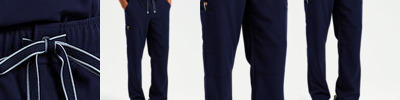 Men’s cargo scrub pants. Comfortable four-way stretch. Breathable, easycare, crease-resistant fabric. Single-button waistband with adjustable drawcord and zip fly. Multiple mobile-friendly coin and zip pockets. Hemmed side vents. Decorate with embroidery and/or print. Contains certified recycled polyester.