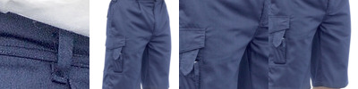 Polyester/cotton holster trousers with four-way stretch panels and kneepad pockets. Recycled polyester fabrics. Cargo pocket with zip pocket. 40+ UPF rated fabric.