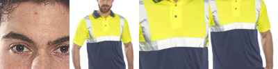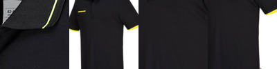 Environmentally-friendly certified recycled fabric. Breathable. Slim fit. Tape gap on side seams for maximum garment stretch. Contrast collar with fluorescent stripe. Reflective tape. Ribbed collar. Button placket opening. CE certified. Certified to EN ISO 20471 after 50 washes. 40+ UPF-rated fabric.