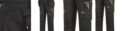Rule pocket. Triple-stitched seams. UPF 50+. Side elastic waist. Smart phone pocket. 14-pockets. Bar tacked at all stress points. Two tier knee pad pockets. Adjustable leg length. Registered Community Design. High rise back waistband. Crotch gusset. Lower back leg pocket. Zip fly with Portwest branded stud button. Pre-bent knees. Webbing belt loops. Zipped side thigh pocket. Stretch ripstop. Contemporary design with an ergonomic cut.