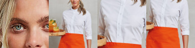 Ideal for laundry. No buttons to fall away. Soft hand feel. Specifically engineered for user comfort. Mandarin collar stand with topstitching. Press studs. Unisex styling. 60 degree domestic wash.