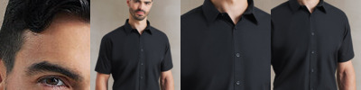 Formal shirt with left breast mitred pocket, stiffened formal cut collar, self-colour buttons on coloured shirts. Easycare, soil resistant finish.