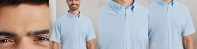 Button down collar, left breast open mitred pocket, centre back pleats. Cotton rich, Easycare, wrinkle free, Oxford fabric.