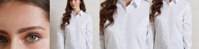 Ladies signature Oxford long sleeve Easycare blouse with wrinkle free finish for a smart and professional appearance. Soft collar styling. Rounded bottom hem. Fitted styling with bust and back darts. Pearlised buttons on light blue and white shirt, self c