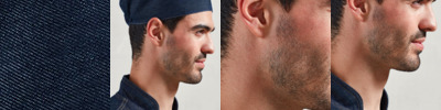 One size fits all. Flat top chef's skull cap. Elasticated back, crease resistant finish. Industrial laundry 85°C, domestic wash 60°C. Size One Size