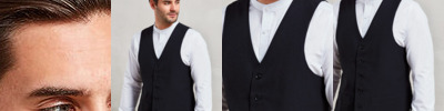 Contemporary style 4 button waistcoat with 2 functional watch pockets. Self fabric back.
