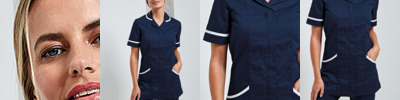 A practical and very stylish addition to our healthcare range, the "Daisy" Tunic offers a V-neck styling with contrast trimming. Designed with a feminine fit in mind, the "Daisy" features side and back pleats and useful curved side pockets, again featuring a piped contrast edging.