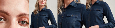 Long sleeve denim shirt with contrast stitch detail with two chest pockets. Buttoned cuff and sleeve guard. Curved hem. Back yoke.