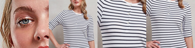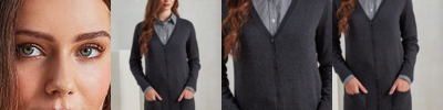 ¼ zip through collar fastening. Cotton rich yarn for a soft feel. Fine gauge knit. Set-in sleeve with ribbed knit cuffs and a ribbed hem for fitted styling.