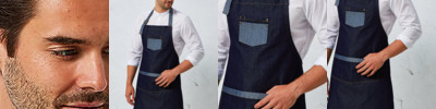 A full bib denim apron with two large metal eyelets that secure the waist ties. Large centre pocket measuring 36cm wide with combined pen pocket. Contrast trim on pocket and ties gives a two-tone denim effect. 86cm long by 72cm wide. WRAP certified. Oeko-Tex certified. BSCI certified. Reach certified. SEDEX certified.