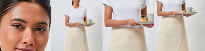 Self-fabric ties that are fastened to the main body of the apron with dungaree style buckles. The straps then hook over the shoulders, cross over at the back, loop through the large eyelets at the waist and tie neatly at the back. Also features a useful front centre pocket with combined pen slot. This style is designed to be paired with our PR119 Interchangeable apron straps should you want a contrast colour or fabric to the main body of the apron.