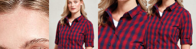A women's long sleeve semi-fitted shirt with attractive check pattern. Single button cuff and sleeve guard which is designed to be rolled up and secured in place with a button and tab on the upper arm. Soft collar styling with curved hem. WRAP certified. BSCI certified. Reach certified. SEDEX certified.