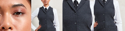 An attractive, versatile waistcoat for ladies. Styled with a lapel collar that leads into the main body of the waistcoat with four button fastening. The herringbone pattern has been achieved by two coloured yarns being woven together. This waistcoat is fully lined on the underside and to the reverse where there is a buckle for the wearer to adjust accordingly. Features two front open pockets. BSCI certified. Reach certified.