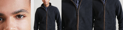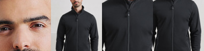 Men’s long sleeve fleece jacket with contrast trim detail. High neck rounded collar, leading into a two-way zipper. Two zipped external pockets and two internal open pockets. Stitched side panel detail. Elasticated cuff with trim detail. Contrast fabric hook on back of collar for hanging up. Certified WRAP, Amfori BSCI and Sedex.
