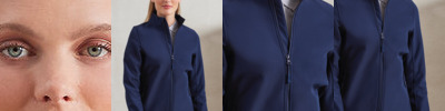 Two-layer softshell jacket with a bonded fleece inner, featuring two handy patch pockets. Full zip-through style with zip pulls. Cadet collar with chin guard. Zipped side pockets with zip pulls. Hook and loop strip on cuffs for adjustable fastening. Curved hemline with an elastic drawcord and plastic cord lock to secure in place. Stitched side panels enhance this more feminine fit. Made from 100% recycled polyester with Premier's Windchecker trademark for a wind- and water-resistant style that is suitable for screen print applications. Global Recycled Standard certified.