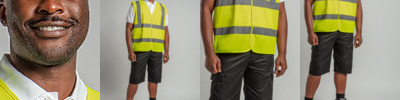 Certified EN ISO 20471:2013+A1:2016. RIS-3279-TOM ISSUE 1:2016 (Orange only). HV Orange & HV Yellow - Class 2. Two-Colour - Class 1. Solid Colours - Non Certified. Full front tear and release fastening. Over shoulder and around body reflective tape.