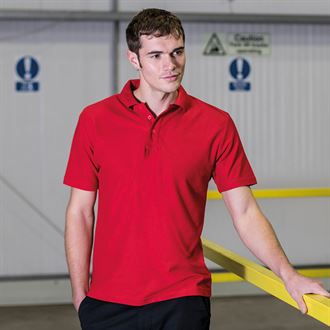 Pique knit classic polo with 3 button placket design in self coloured button with a spare button included. Taped neck and twin needle stitching for durability.Worldwide Responsible Accredited Production (WRAP) Certified Production. Fabric 50% Polyester, 50% Cotton. Heather Grey - 5% Polyester, 95% Cotton Weight 200gsm Size Chest (to fit) S - 34", M - 38", L - 42", XL - 46", 2XL - 50", 3XL - 54", 4XL* - 56"* , Size 4XL only available in Black, Navy and White