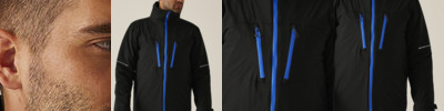 Warm-backed woven Softshell XPT waterproof and breathable. 3-layer wind-resistant membrane fully printable fabric. Inner zip guard. 2 zipped lower pockets and 1 zipped chest pocket.