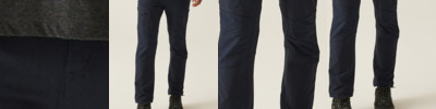 Hardwearing polycotton fabric with water-repellent coating. Multi zip pocket design with 8 pockets. Part elasticated waistband and triple stitched seams with reinforced crotch. Kneepad pockets compatible with Regatta kneepads.