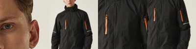 Waterproof and breathable Isotex 10,000 Stretch Ripstop fabric, conforms to EN343 3:2, sealed seams and a DWR (Durable water-repellent) finish for all-weather protection. Thermo-reflect lining panel for heat retention. RFID protection pocket for added security. Packaway hood that conceals away into collar, 2 zipped lower pockets, 1 waterproof zipped sleeve pocket and 1 zipped waterproof chest pocket. Storm flap covered CF zip. Concealed zip in lining for embroidery access, and shock cord adjusters at hem. Reflective details on sleeves and back. .