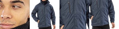 Zip out luxury Tech-3™ drop liner. Taped seams. Twin needle stitching. Full front zip fastening. 2 zip closing side pockets, 1 zip closing front chest pocket, 1 zip closing inside pocket, 1 inside pen holder pocket, 1 inside large mesh pocket, 1 large inside pocket (outer jacket) and 1 inside phone pocket. Cable loops for headphones. Stud closing adjustable cuffs. Adjustable shockcord waist. Stud closing storm flap. Secondary internal zip to attach inner luxury Tech-3™ drop liner (supplied). Hinged internal neck flap for customers own branding details. Concealed access for print and embroidery.