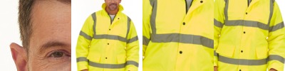 - Hi-Vis Yellow and Hi-Vis Yellow/Navy, Orange and Orange/Navy conform to EN ISO20471:2013 Class 2; Orange and Orange/Navy conform to GO/RT 3279 and approved for the railway industry; 5cm width reflective tapes around the body and one over each shoulder; 100% waterproof zippers and branded zipper pullers applied to the front and chest pocket; 2 hand warmer pockets with zipper fastening; Shaped lower back for style; Navy contrast helps to provide a corporate image and hide scuff marks