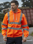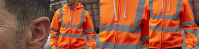 Hi Vis Yellow and Orange conforms to EN ISO 20471 Class 3 and Orange and Orange/Navy is also RIS-3279-TOM Railway use certified. Made of 280 gsm water-repellent anti-pill single jersey knitted soft-feel polyester fabric. Two 5cm width reflective tapes around the body and arms and over each shoulder. Drop hood with draw cord adjustment. Full length front zip. Two Handwarmer pockets. Twin needle stitching throughout.