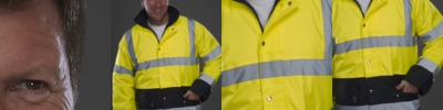 Hi-Vis Yellow & Hi-Vis Yellow/Navy, Orange and Orange/Navy conform to EN ISO20471:2013 Class 3. Orange and Orange/Navy conform to GO/RT 3279 & approved for the railway industry. Navy provides enhanced visibility. 3 layers softshell fabric ensures 8000mm breathable & 3000 mvp waterproof. Outer layer: 100% polyester. Middle layer: TPU membrane. Inner layer: 140D warm & comfort microfleece. 5cm width reflective tapes around the body and arms, one over each shoulder. 100% waterproof zippers & branded zipper pullers applied to the front and chest pocket. 2 hand warmer pockets with zipper fastening. Rubber cuff adjusters & draw cord hem adjuster. Shaped lower back for style. Navy contrast helps to provide a corporate image and hide scuff marks.