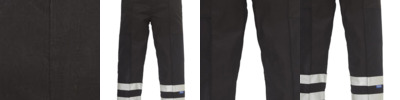 Hi Vis Yellow & Orange conform to EN ISO20471:2013 Class 1. and Orange also conforms to GO/RT 3279. Black & Navy provide an enhanced visibility for safety. 80/20 Polycotton fabric treated with durable water repellent finish. Two 5cm width 3M reflective tapes on the bottom of each legs. Partly elasticated waistband with 5 belt loops. Match-colour zip fly & button. Two cargo pockets with extra reflective tape & border trimming to enhance the visibility. Knee pads pocket with concealed access. Rear pocket with button fastening.
