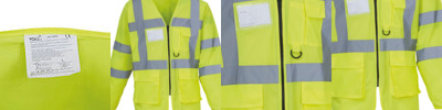 Conforms to EN ISO20471:2013 Class 3. Two 5cm reflective tape band and braces configuration with two bands encircling the full length sleeves. Touch and close front Velcro fastening.