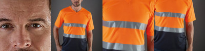 Top cool v-neck mesh high visibility t-shirt. Made of newly designed super light mesh fabric and mesh reflective tapes to achieve the maximum breathable quality and keep the wearers cool and comfortable. Regular fit - true to size. Soft rib-knitted collar and cuffs in self-matching colour; Individually bagged; Decoration friendly and quick dry. Yellow and Orange conforms to EN ISO20471:2013 Class 2 . Orange and Orange/Navy also conforms to RIS-3279-TOM. Black and Navy provide enhanced visibility.
